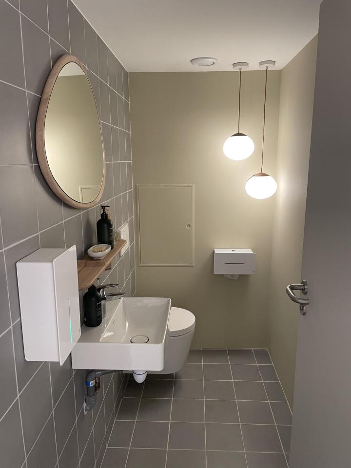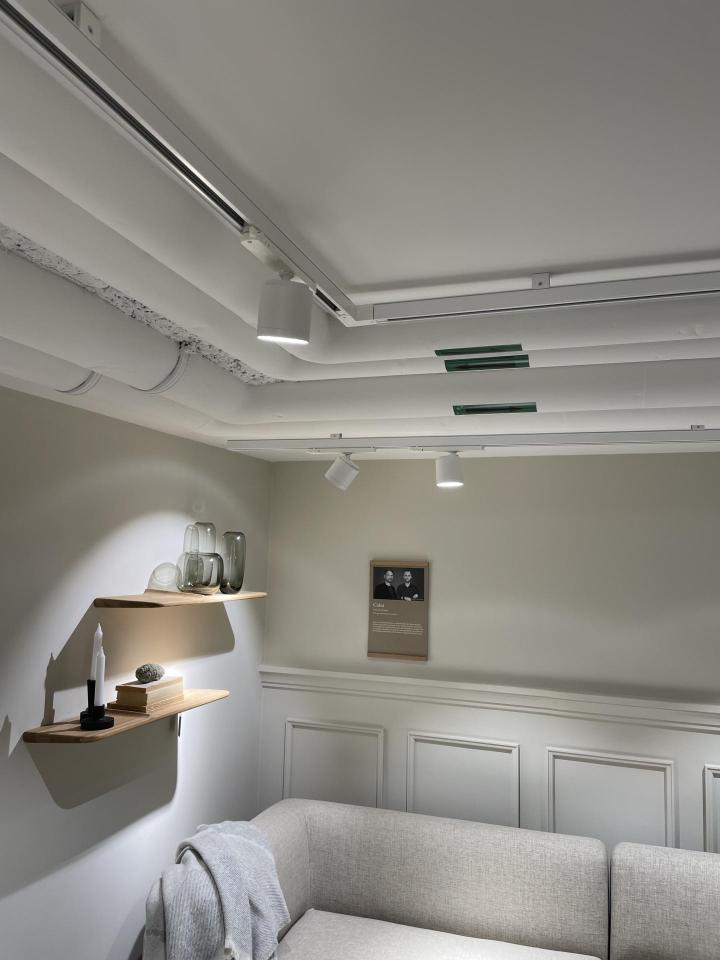Nous avons accomplis avec succès l'exigence de l’architecte : laisser visible tous conduits traversant les locaux afin de conserver l'esprit industriel de la pièce.